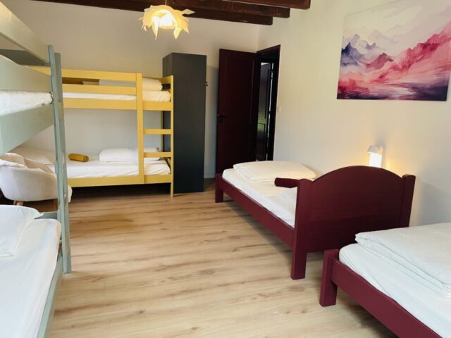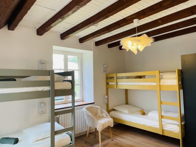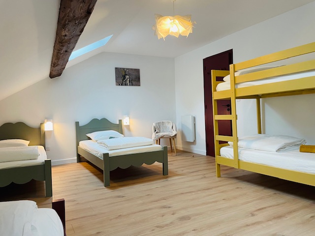 Au second étage, deux dortoirs de 5 et 6 couchages avec casiers individuels fermés, deux salles de bains et toilettes.